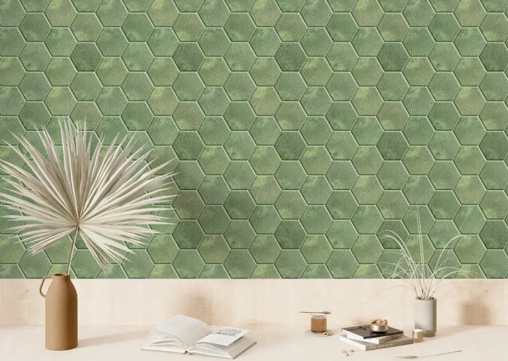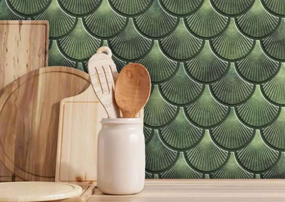 Green Scallop Tile Peel and Stick Tile