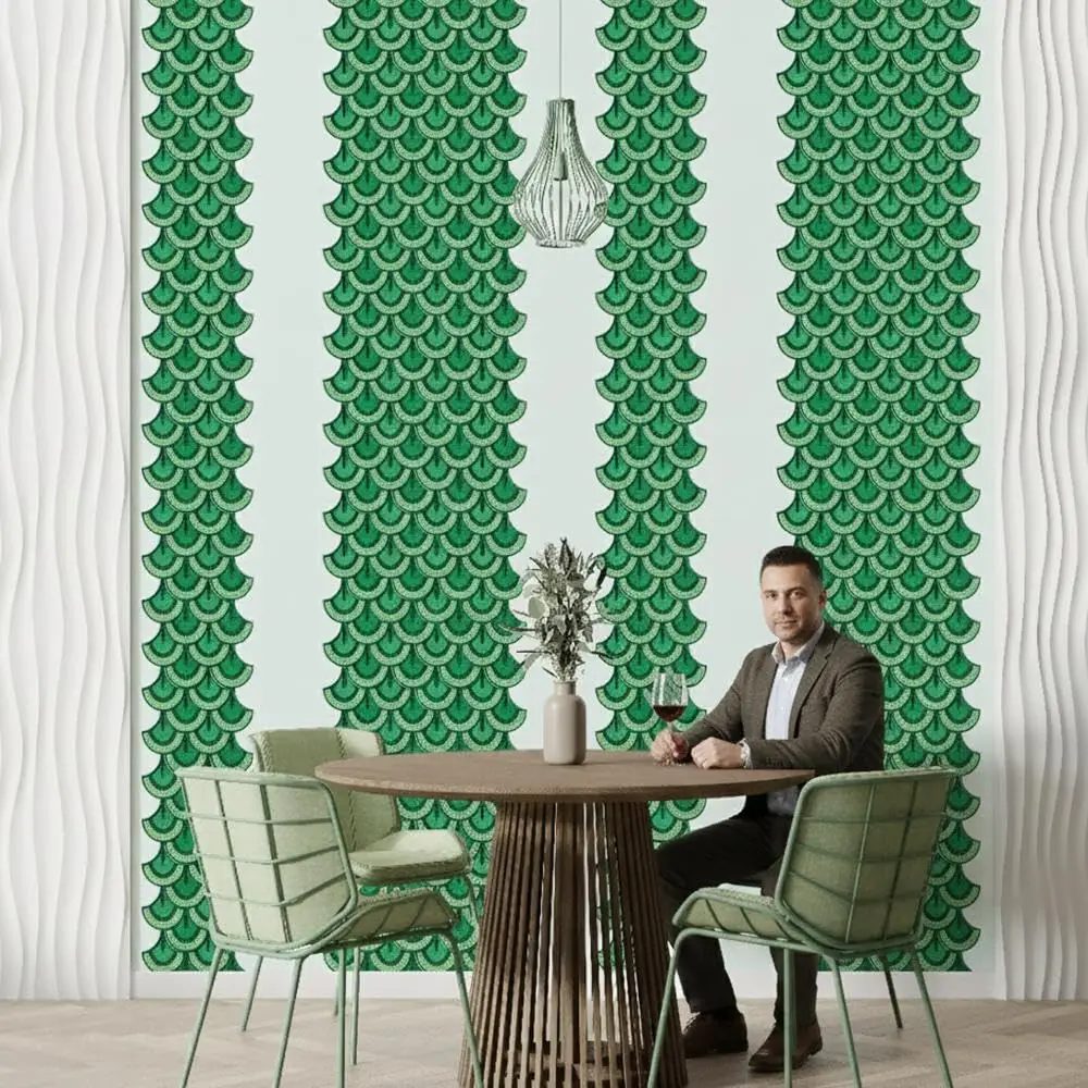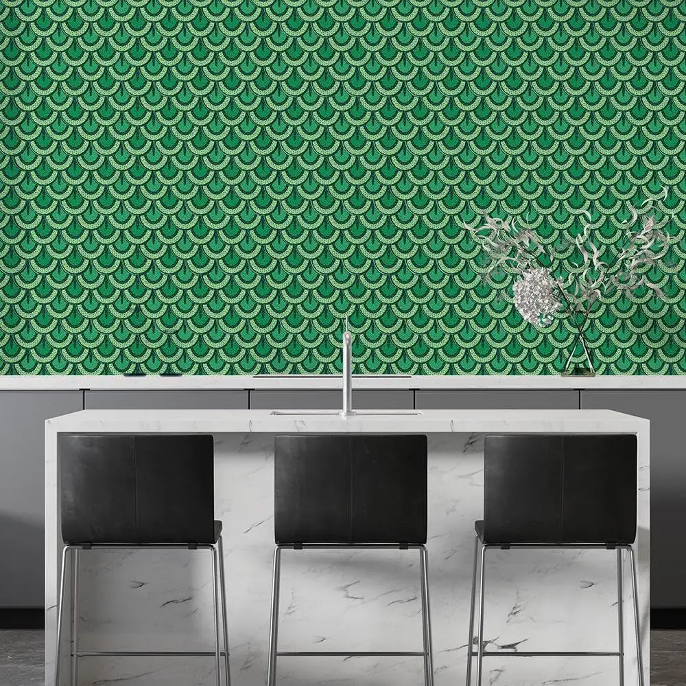 3D Green Fish Scale Shell Peel & Stick Tiles|Easy DIY Adhesive Backsplash for Kitchen Walls