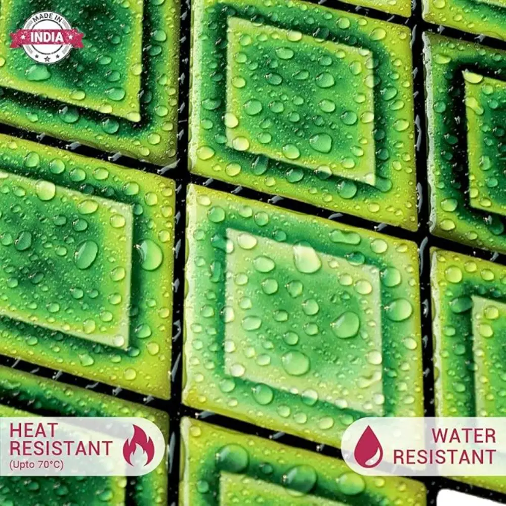 Mosaicowall tiles are made of premium UV-resistant PU coating over a strong self-adhesive base, giving a realistic 3D tile appearance. The PU top layer ensures durability, non-yellowing, and easy cleaning—perfect for Indian kitchens and bathrooms.