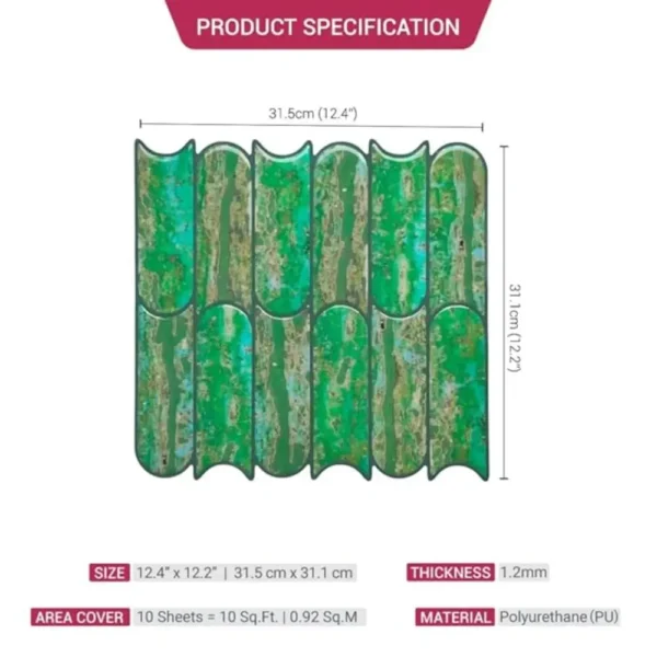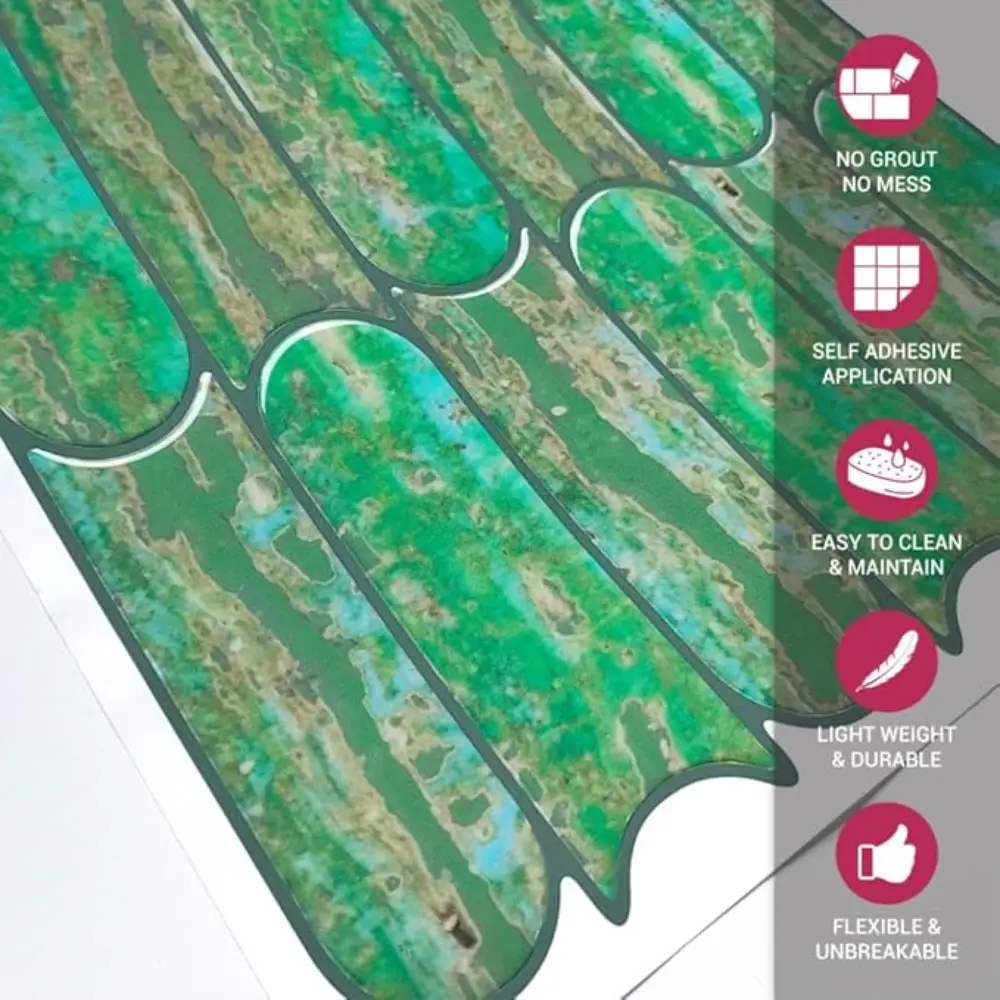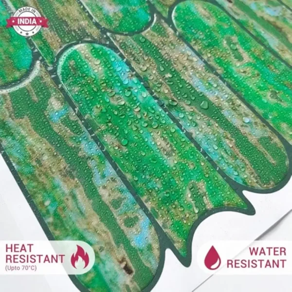 PROPERTIES: Mosaicowall peel & stick tiles exhibit properties like being waterproof, UV resistant, Resistant to heat, Stain-proof, and having a strong adhesive at the back.