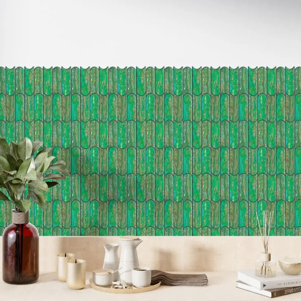 3D Green Peel & Stick Tiles|Easy DIY Adhesive Backsplash for Kitchen Walls