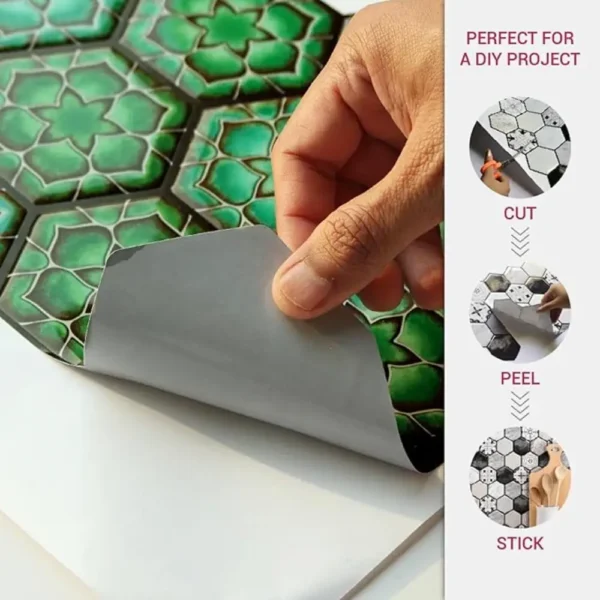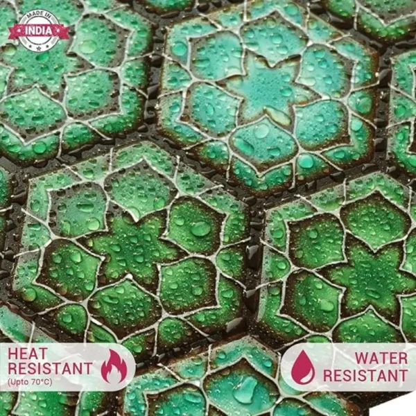 PROPERTIES: Mosaicowall peel & stick tiles exhibit properties like being waterproof, UV resistant, Resistant to heat, Stain-proof, and having a strong adhesive at the back.