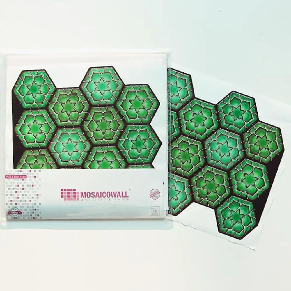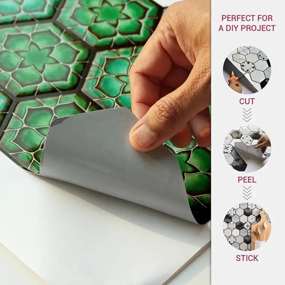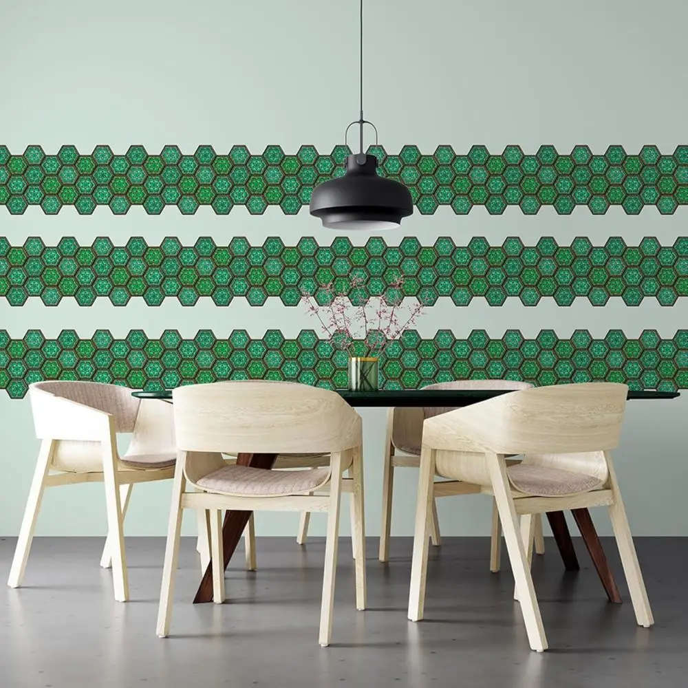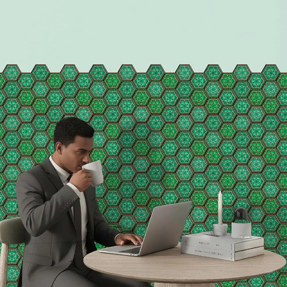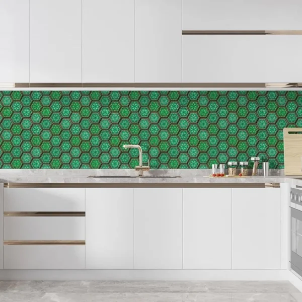 3D Hexagon Green Peel & Stick Tiles|Easy DIY Adhesive Backsplash for Kitchen Walls