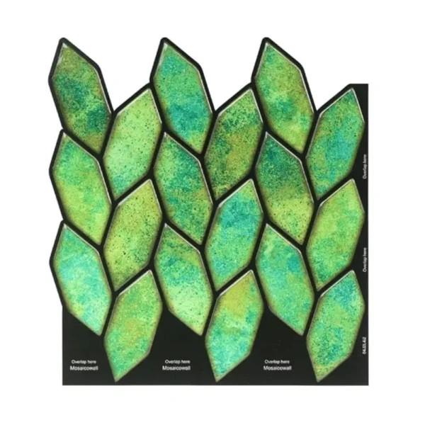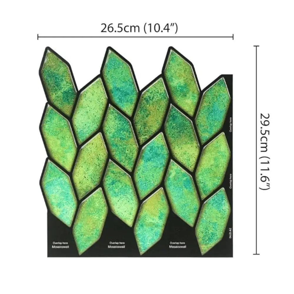 PROPERTIES: Mosaicowall peel & stick tiles exhibit properties like being waterproof, UV resistant, Resistant to heat, Stain-proof, and having a strong adhesive at the back.