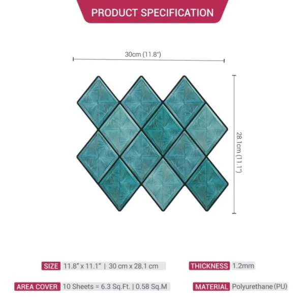 Be the first to review “3D Turquoise Blue Diamond Peel & Stick Tiles|Easy DIY Adhesive Backsplash for Kitchen Walls”