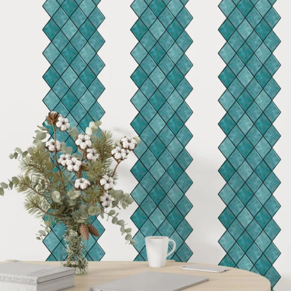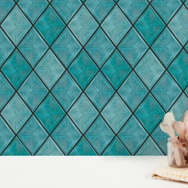 3D Turquoise Blue Diamond Peel & Stick Tiles|Easy DIY Adhesive Backsplash for Kitchen Walls