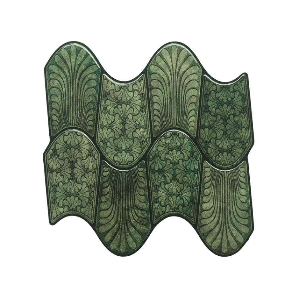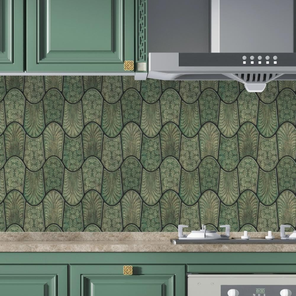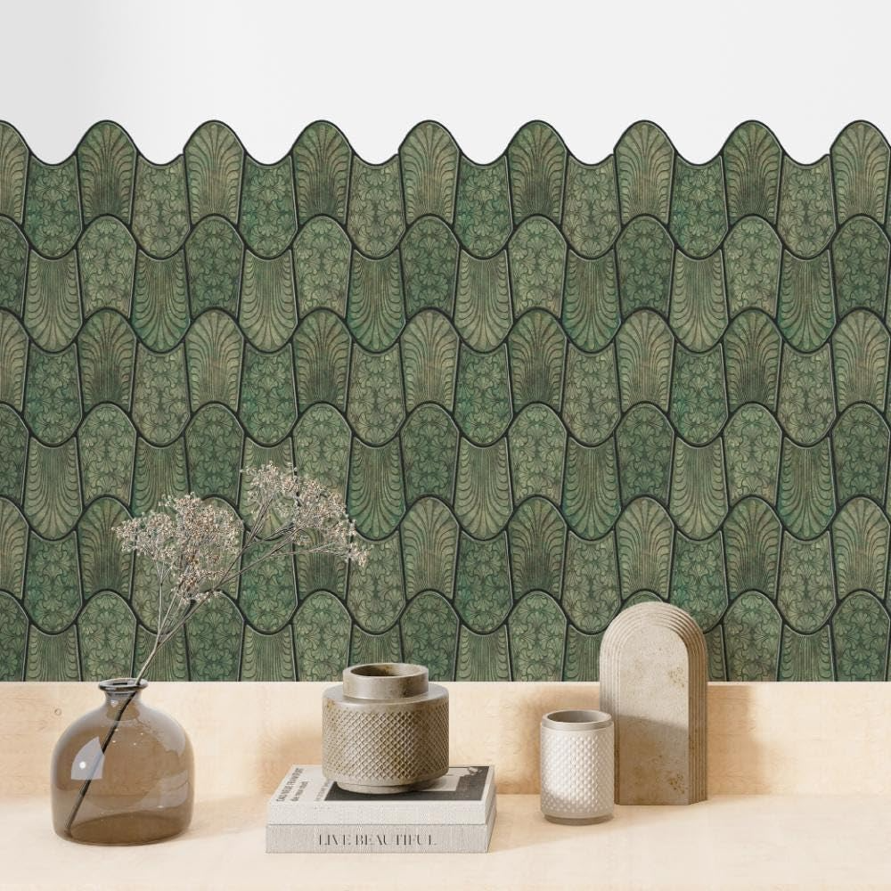 3D Wavy Forest Green Peel & Stick Tiles|Easy DIY Adhesive Backsplash for Kitchen Walls