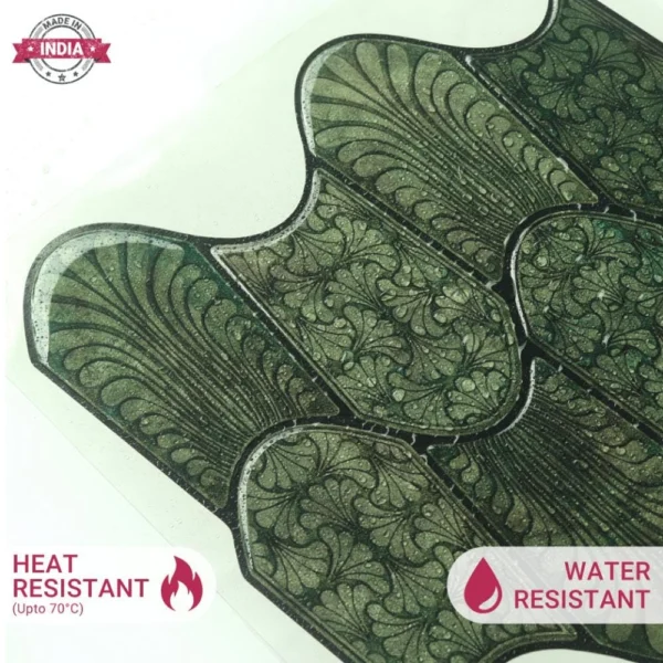 PROPERTIES: Mosaicowall peel & stick tiles exhibit properties like being waterproof, UV resistant, Resistant to heat, Stain-proof, and having a strong adhesive at the back.