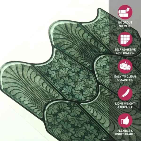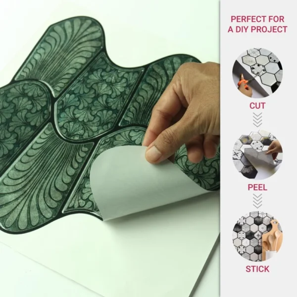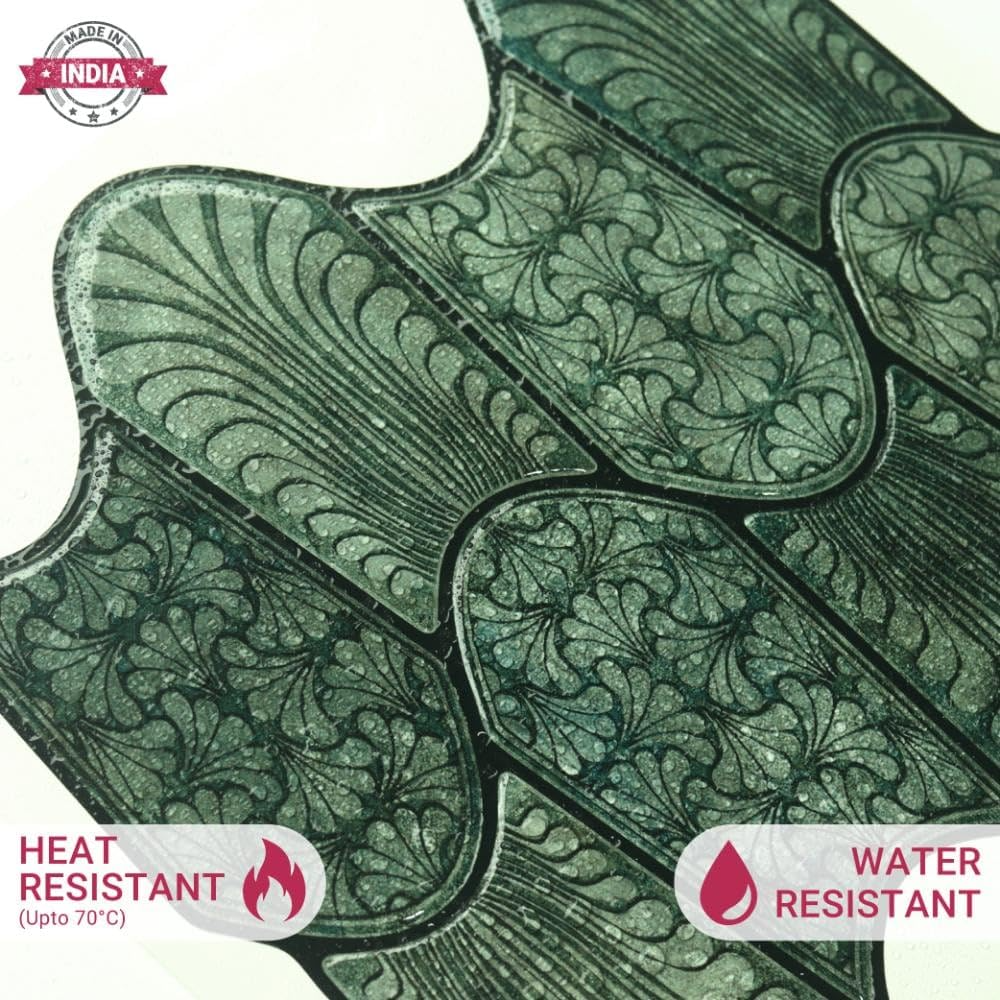 PROPERTIES: Mosaicowall peel & stick tiles exhibit properties like being waterproof, UV resistant, Resistant to heat, Stain-proof, and having a strong adhesive at the back.