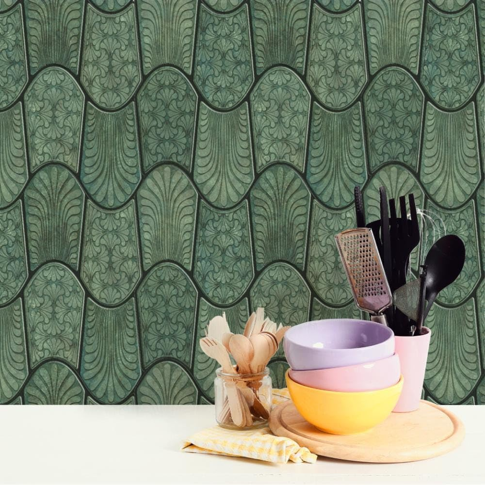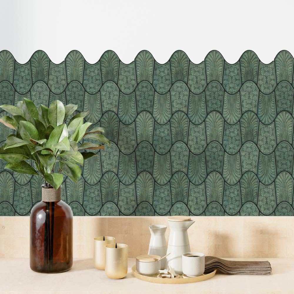 3D Wavy Green Peel & Stick Tiles|Easy DIY Adhesive Backsplash for Kitchen Walls