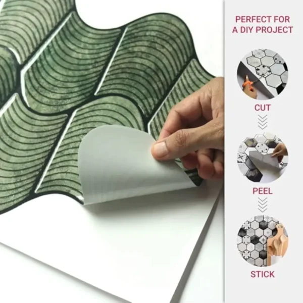 PROPERTIES: Mosaicowall peel & stick tiles exhibit properties like being waterproof, UV resistant, Resistant to heat, Stain-proof, and having a strong adhesive at the back.