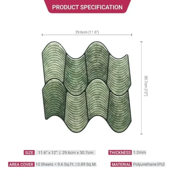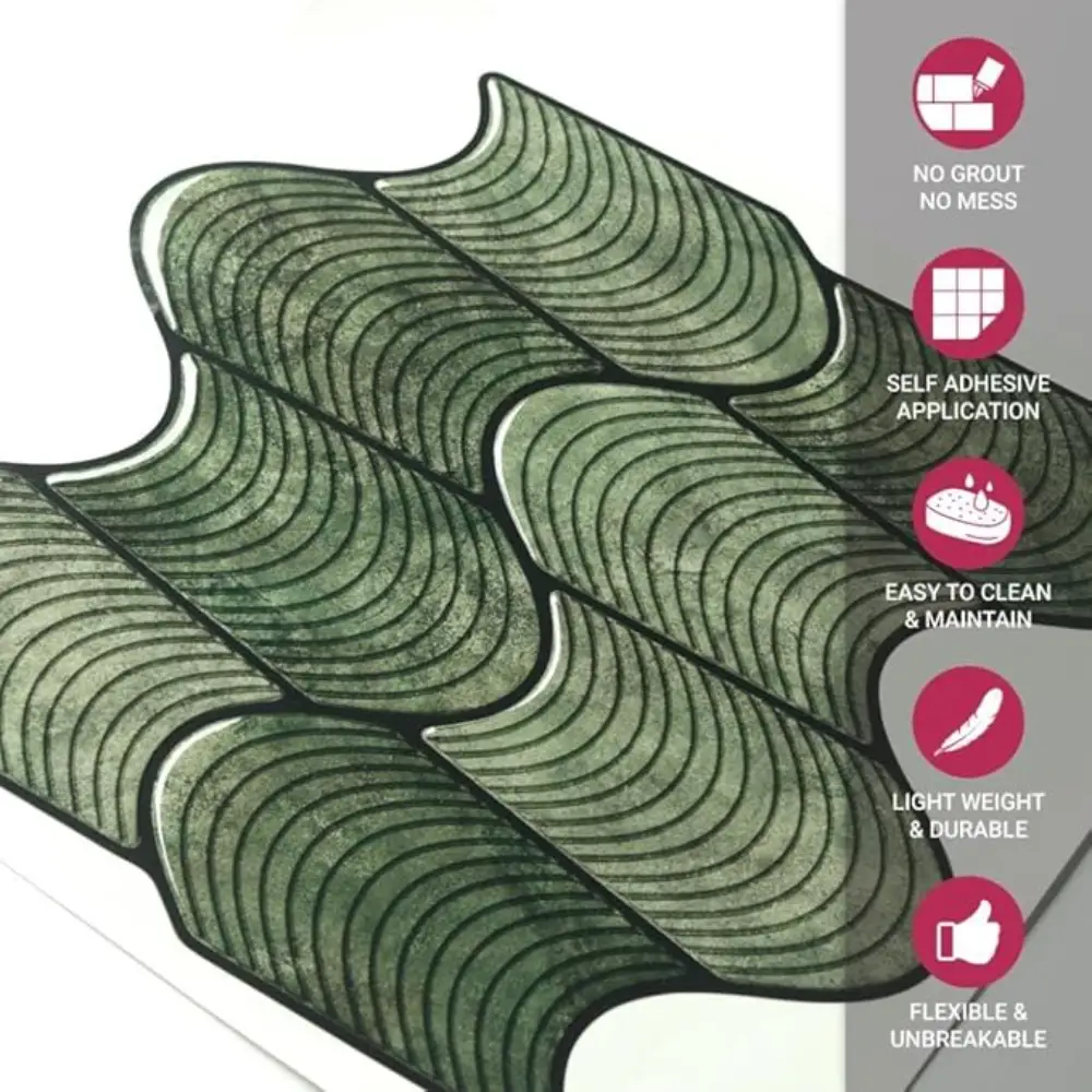 Mosaicowall tiles are made of premium UV-resistant PU coating over a strong self-adhesive base, giving a realistic 3D tile appearance. The PU top layer ensures durability, non-yellowing, and easy cleaning—perfect for Indian kitchens and bathrooms.