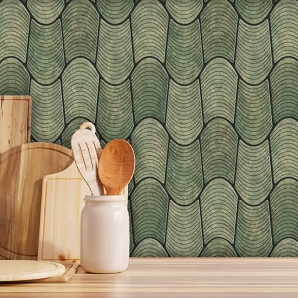 3D Wavy Sage Green Peel & Stick Tiles|Easy DIY Adhesive Backsplash for Kitchen Walls