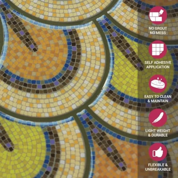 PROPERTIES: Mosaicowall peel & stick tiles exhibit properties like being waterproof, UV resistant, Resistant to heat, Stain-proof, and having a strong adhesive at the back.