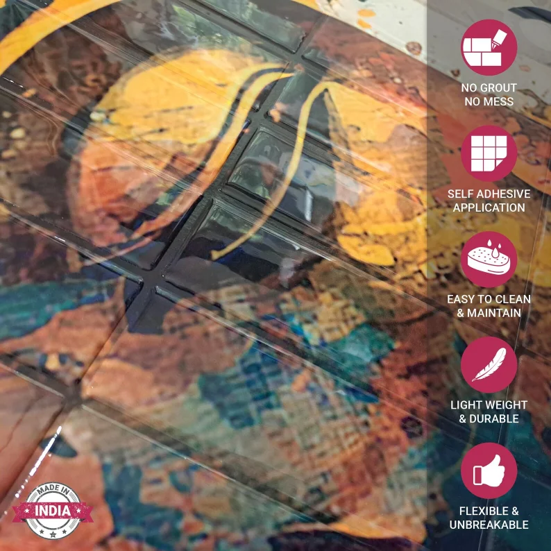 Custom Printed Designs: These peel and stick decal wall tiles feature stunning printed designs and patterns, turning your walls into artistic focal points. Choose from our collection of designs or request your own custom images.