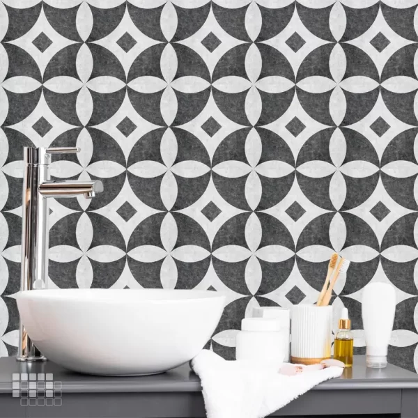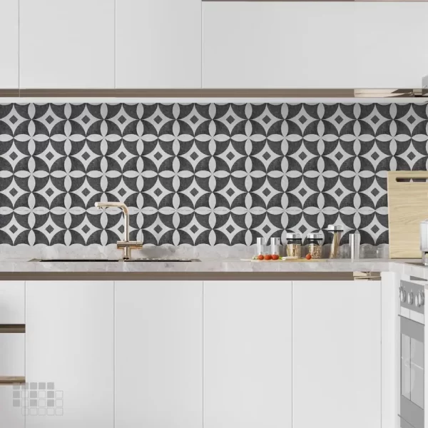 Clean and degrease the surface thoroughly, dry completely, and let the tiles acclimate to room temperature before installation. Press firmly or roll for better bonding. For stubborn corners, use compatible adhesive aids if needed.