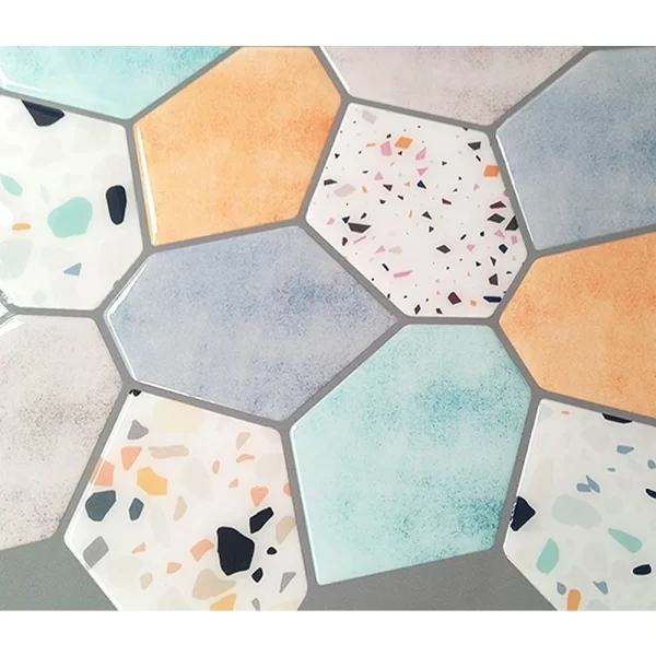 PREMIUM QUALITY: Mosaicowall terrazzo peel and stick tiles are made with top-quality PU gel material with a very high non-yellowing outdoor life. The top PU gel has a thick coating giving a better 3-dimensional effect than normal peel & stick tiles.