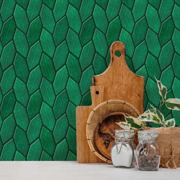 Leafy Emerald Green Peel And Stick Wall Tile | Kitchen Backsplash Tiles