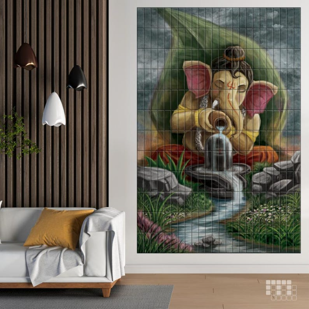 Lord Ganesha Peel and Stick Wall Tile: Pooja Room Decor
