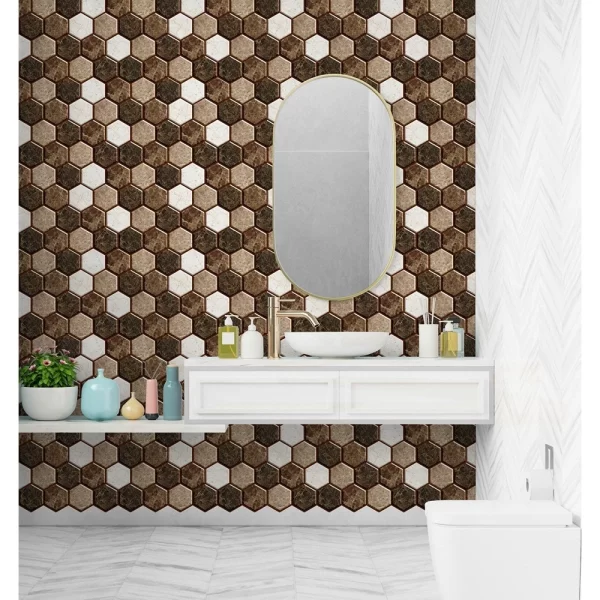 PROPERTIES: Mosaicowall peel & stick tiles exhibit properties like being waterproof, UV resistant, Resistant to heat, Stain-proof, and having a strong adhesive at the back.