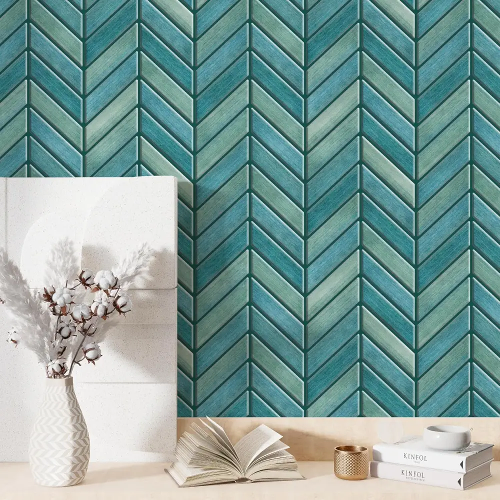 Mosaicowall tiles use a thicker PU coating, stronger adhesive, non-yellowing technology, and premium designs—offering superior quality compared to thin vinyl alternatives.