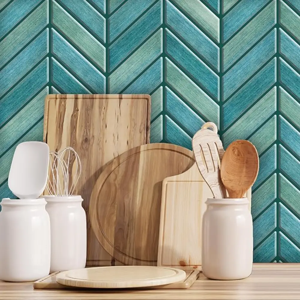 Mosaicowall tiles are made of premium UV-resistant PU coating over a strong self-adhesive base, giving a realistic 3D tile appearance. The PU top layer ensures durability, non-yellowing, and easy cleaning—perfect for Indian kitchens and bathrooms.