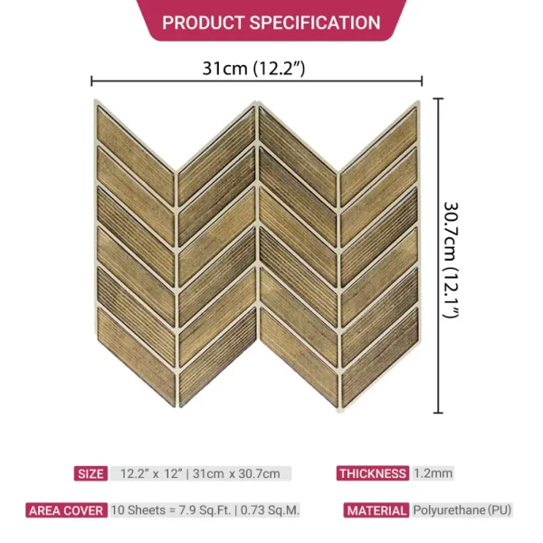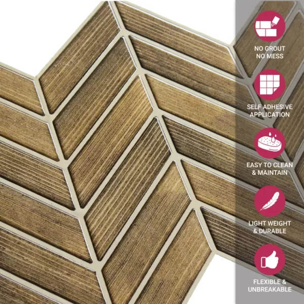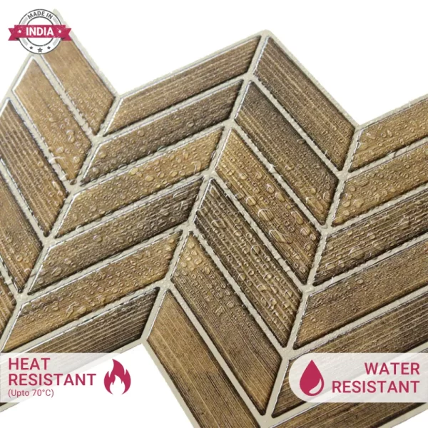 PROPERTIES: Mosaicowall peel & stick tiles exhibit properties like being waterproof, UV resistant, Resistant to heat, Stain-proof, and having a strong adhesive at the back.