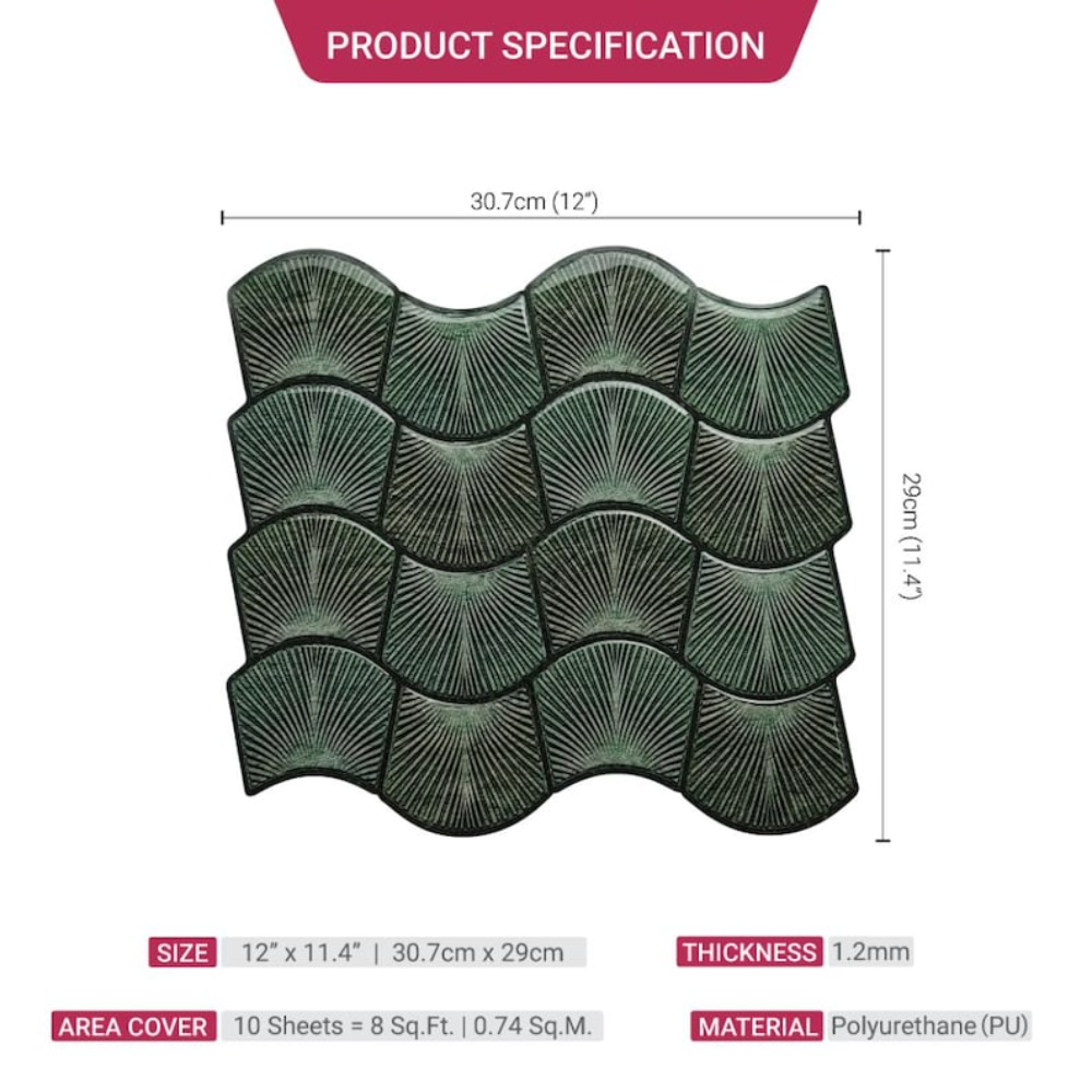 Mosaicowall tiles are made of premium UV-resistant PU coating over a strong self-adhesive base, giving a realistic 3D tile appearance. The PU top layer ensures durability, non-yellowing, and easy cleaning—perfect for Indian kitchens and bathrooms.
