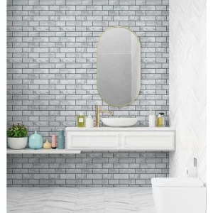 Mosaicowall tiles are made of premium UV-resistant PU coating over a strong self-adhesive base, giving a realistic 3D tile appearance. The PU top layer ensures durability, non-yellowing, and easy cleaning—perfect for Indian kitchens and bathrooms.