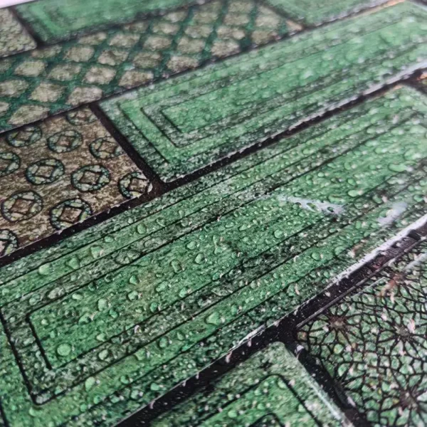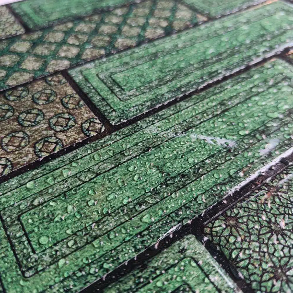 Mosaicowall tiles are made of premium UV-resistant PU coating over a strong self-adhesive base, giving a realistic 3D tile appearance. The PU top layer ensures durability, non-yellowing, and easy cleaning—perfect for Indian kitchens and bathrooms.